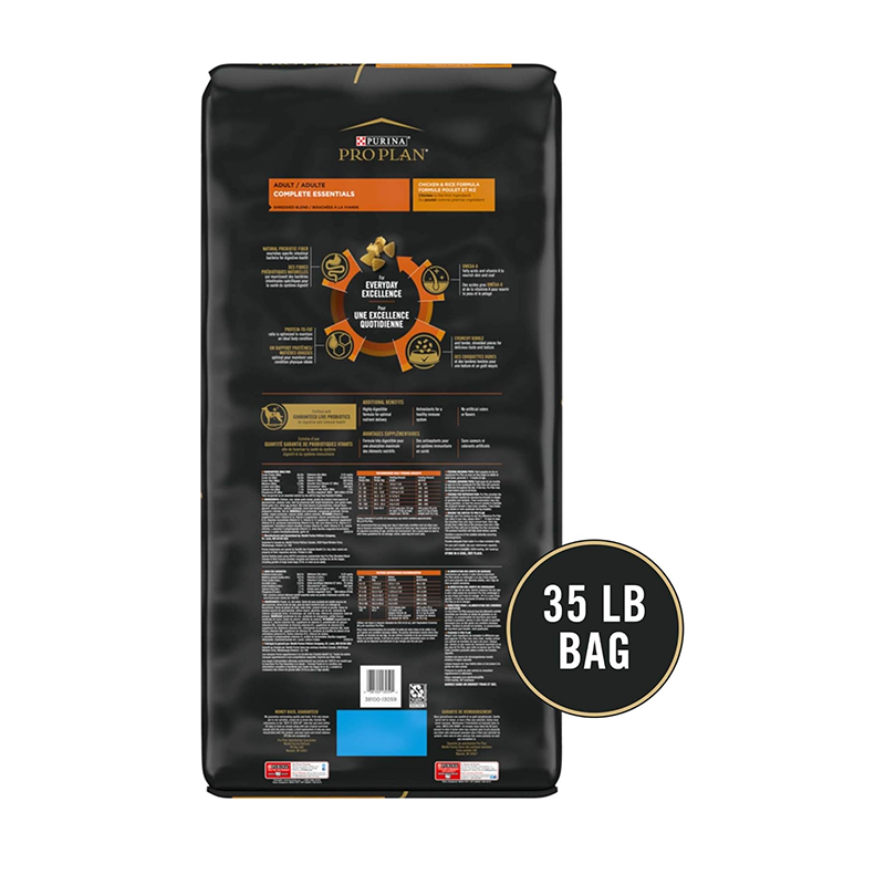 Purina Pro Plan Complete Essentials Shredded Blend Chicken and Rice Dog Food Dry Formula with Probiotics for Dogs – 35 lb. Bag